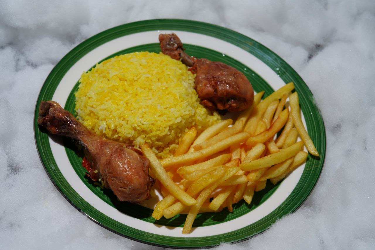 Quarter pound chicken drumstick cooked in our special Homali way for incredible flavour and juiciness – tender inside with a perfect golden finish. Served with fragrant saffron rice and crispy chips.