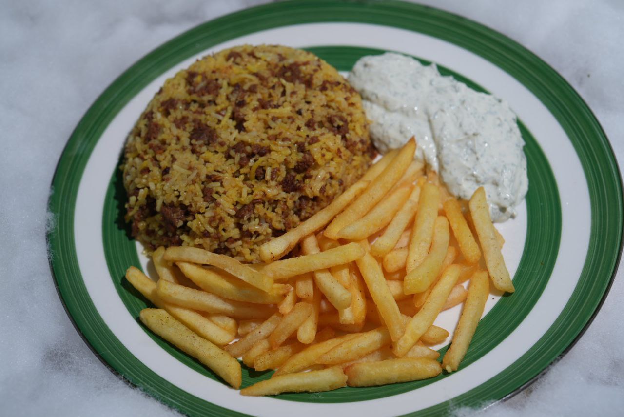 Minced beef cooked in our special Homali way with tomatoes for a fresh taste. Mixed with fragrant saffron rice and served with crispy chips and our special Homali mint & garlic yogurt.